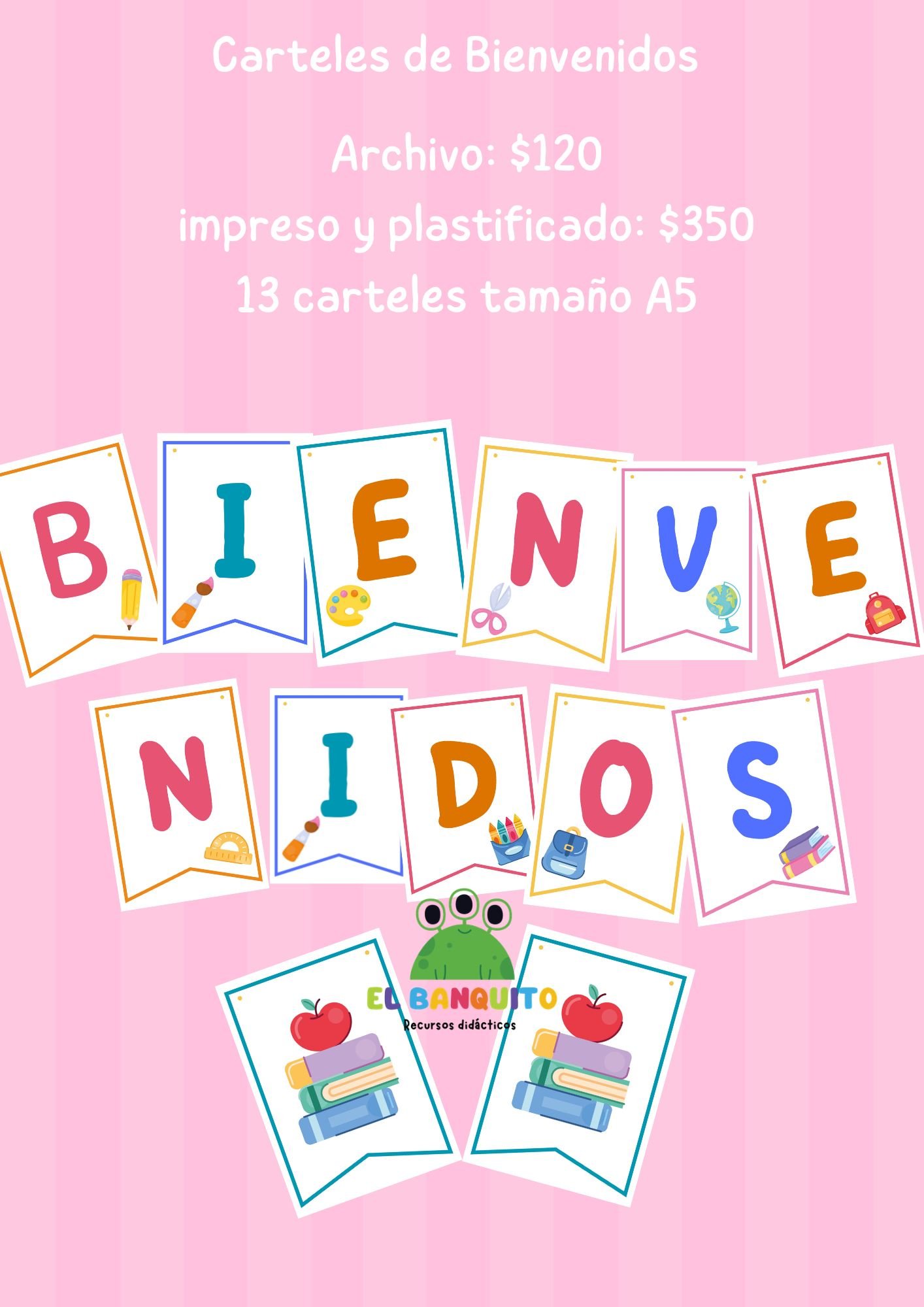 Cartel de bienvenidos para ambientar el salón el primer día de clases.